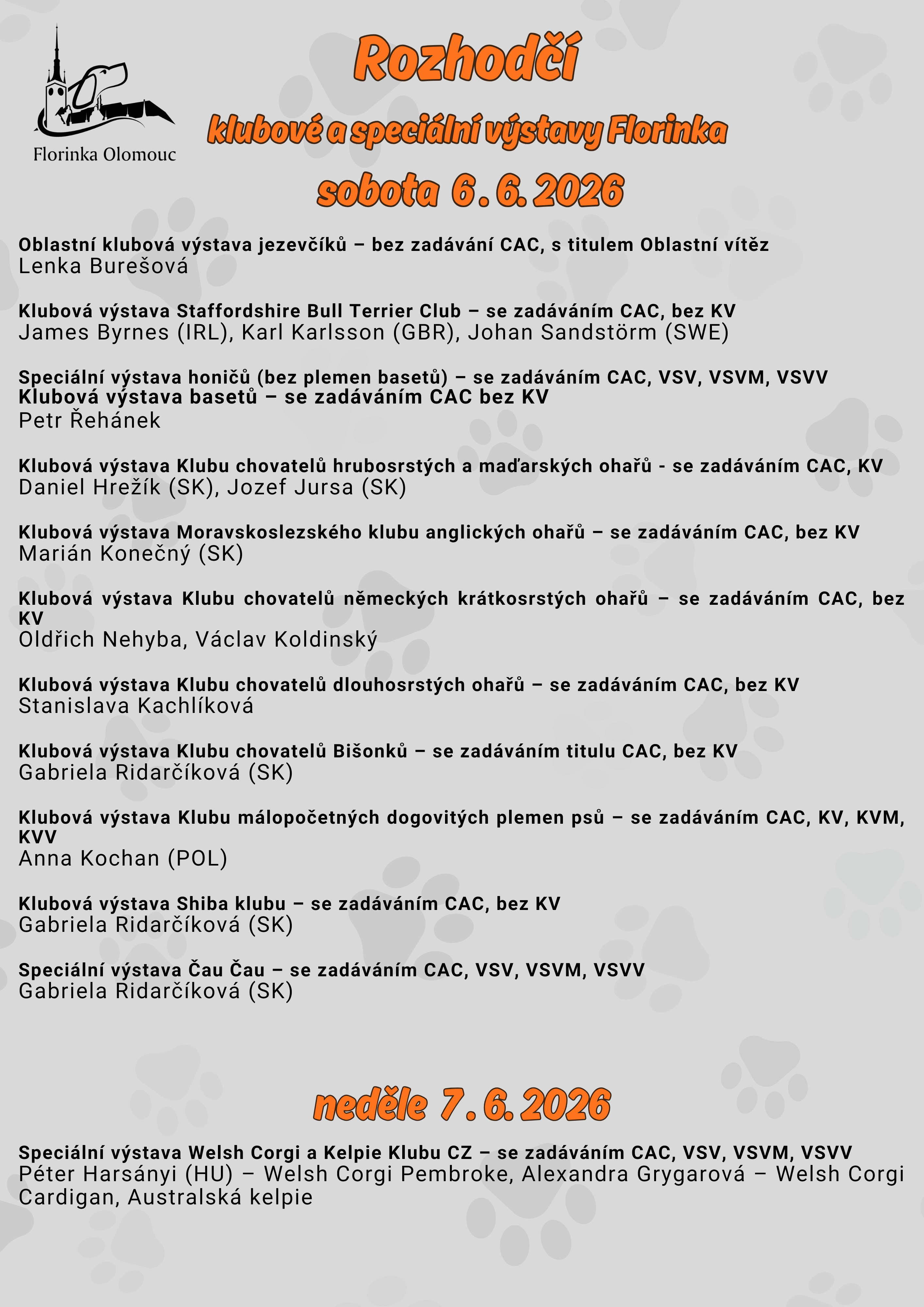 Pozvánka: Klubová výstava anglických ohařů – Florinka Olomouc 2026